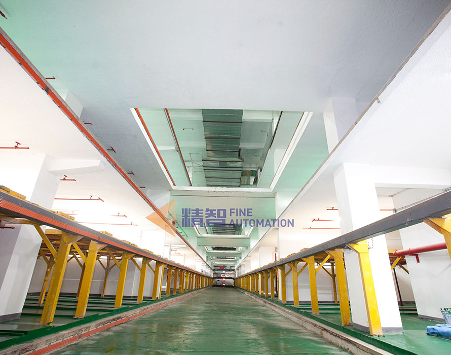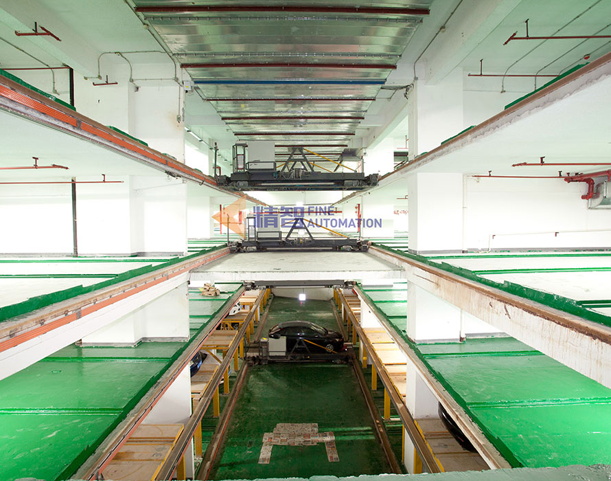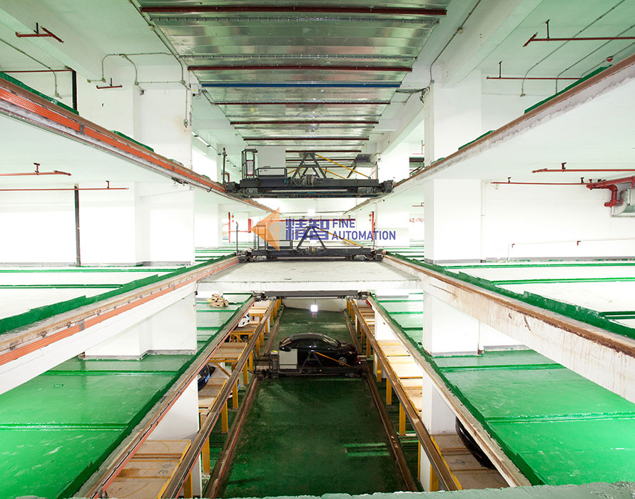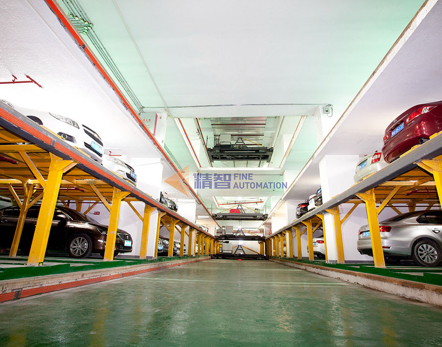 此項目設計中以節省停車出入口面積,增加商鋪租用空間率,確保系統性穩定性等問題為核心,引入精智獨有的平面移動式巷道旋轉技術,使車輛在巷道內調整方向,有效的節省了地面出入口面積,增加商業用地面積,同時保證車輛正進正出。