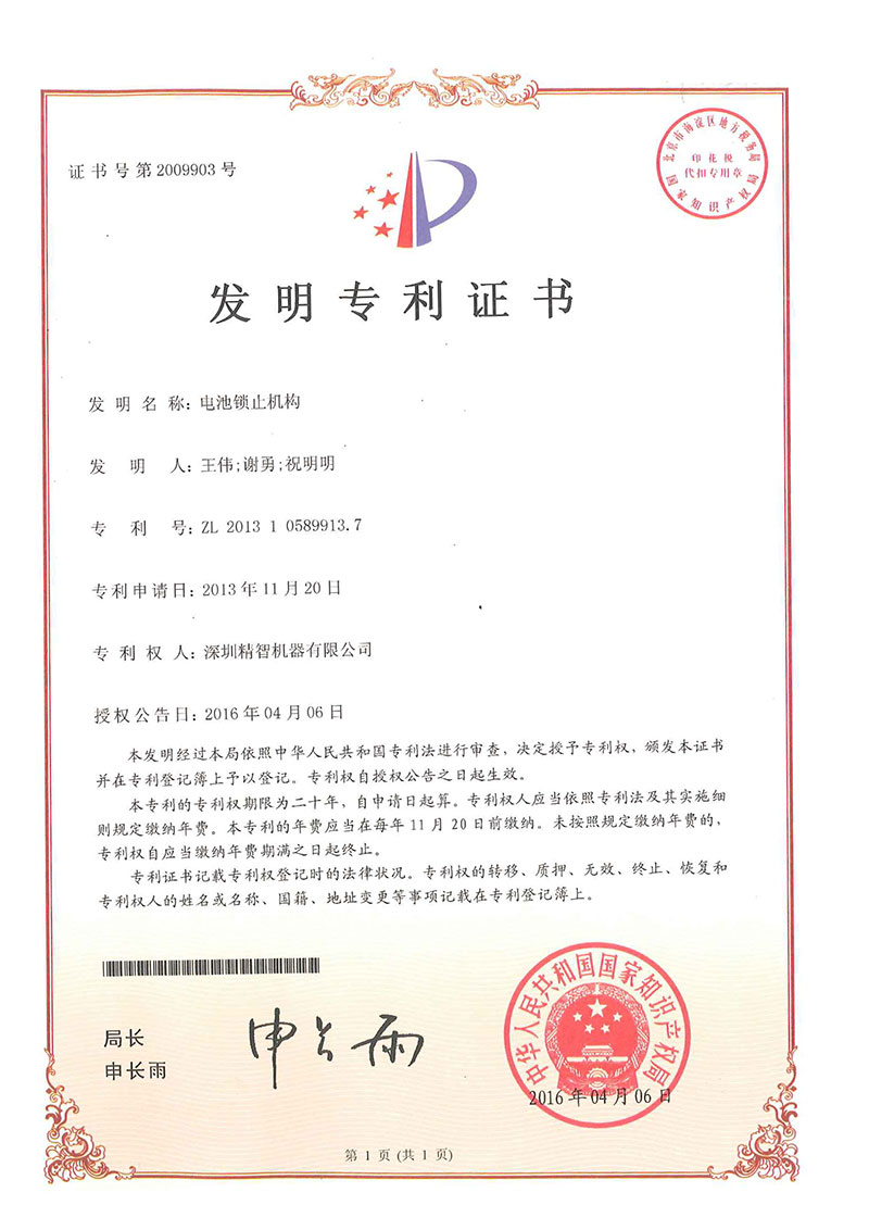 您現在的位置:首頁 > 關于精智 > 專利證書